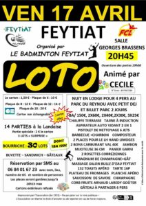 Eco-tournoi de la section badminton du FCL de Feytiat, les 30 et 31 mai 2026. Le tournoi est ouvert de N1 à NC et les trois tableaux sont proposés sur les deux jours. Il y aura une buvette garnie, un stand de cordage et une ambiance ...