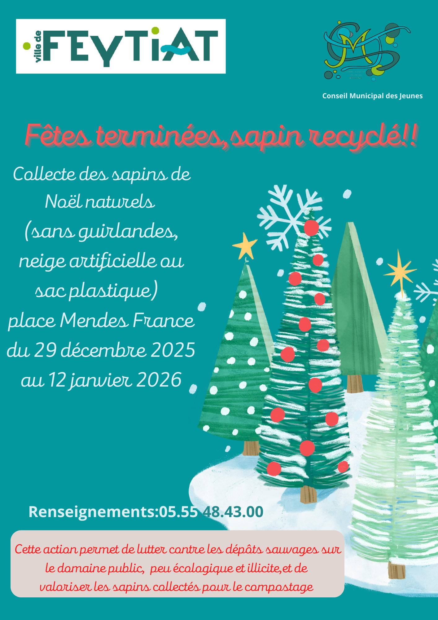 Cette action permet de lutter contre les dépôts sauvages sur le domaine public, peu écologique et illicite, et de valoriser les sapins collectés pour le compostage.