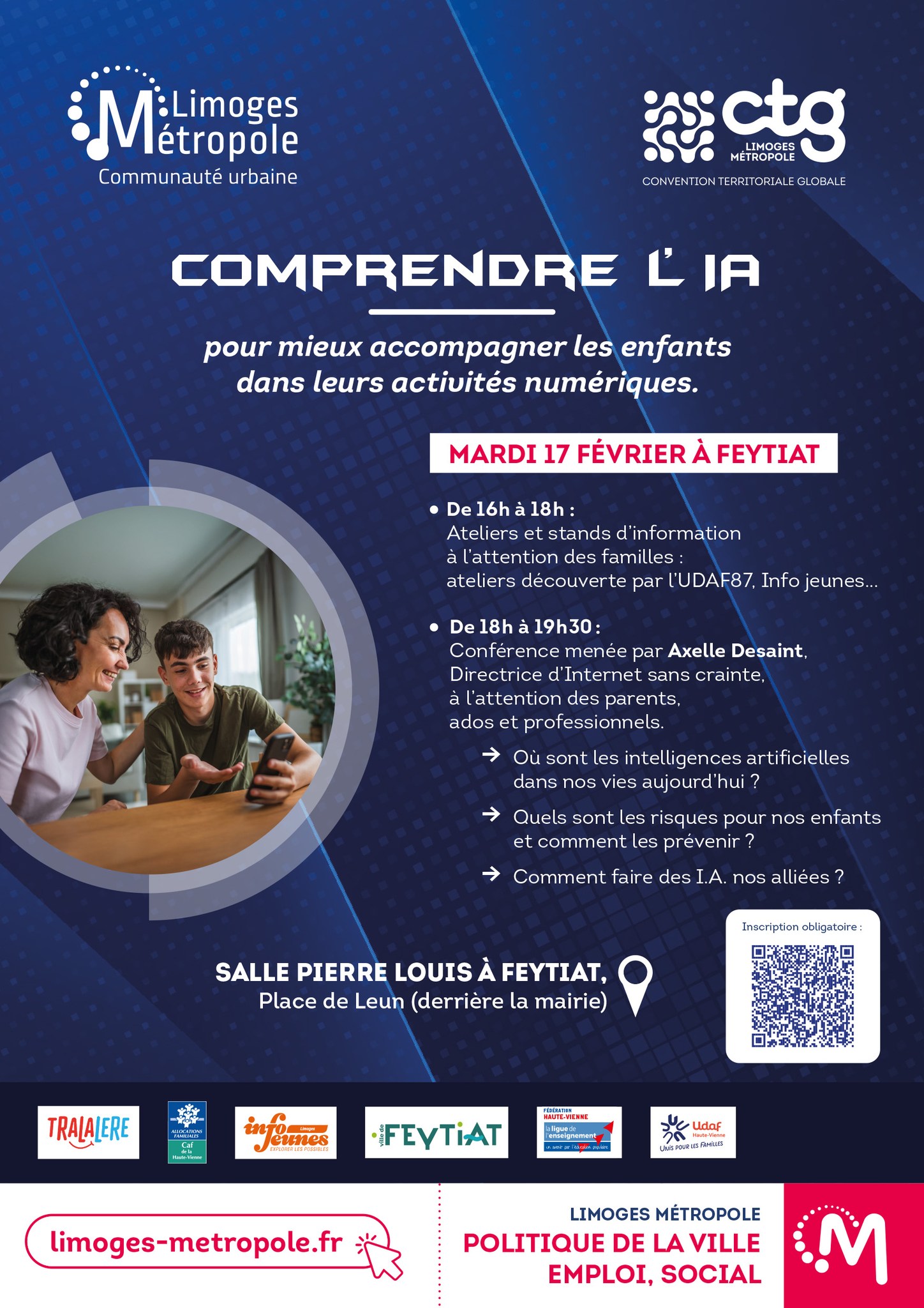 Comprendre l’IA pour accompagner les enfants 9 février 2026Le 17 février 2026Heure : A partir de 16hLieu: salle Pierre-LouisGénéral Share on FacebookShare on TwitterShare on Linkedin