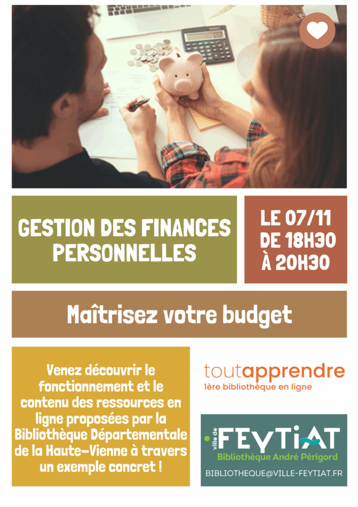 Venez découvrir le fonctionnement et le contenu des ressources en ligne proposées par la Bibliothèque Départementale de la Haute-Vienne à travers un exemple concret : La gestion des finances personnelles et comment maîtriser son budget.