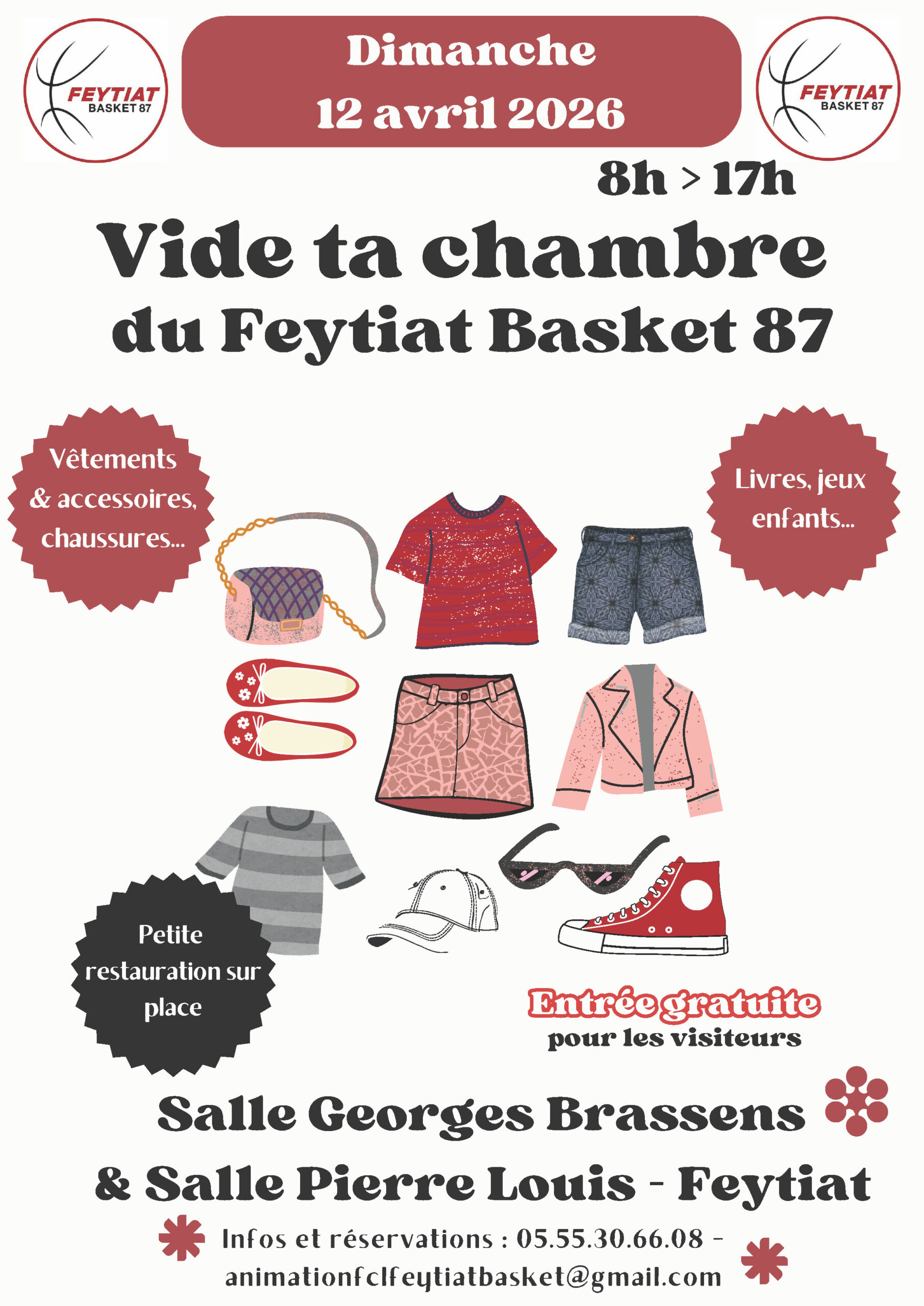 Vide ta Chambre du club de basket 26 mars 2026Le 12 avril 2026Heure : 8h - 17hLieu: Espace Georges-Brassens et Pierre-LouisGénéral Share on FacebookShare on TwitterShare on Linkedin