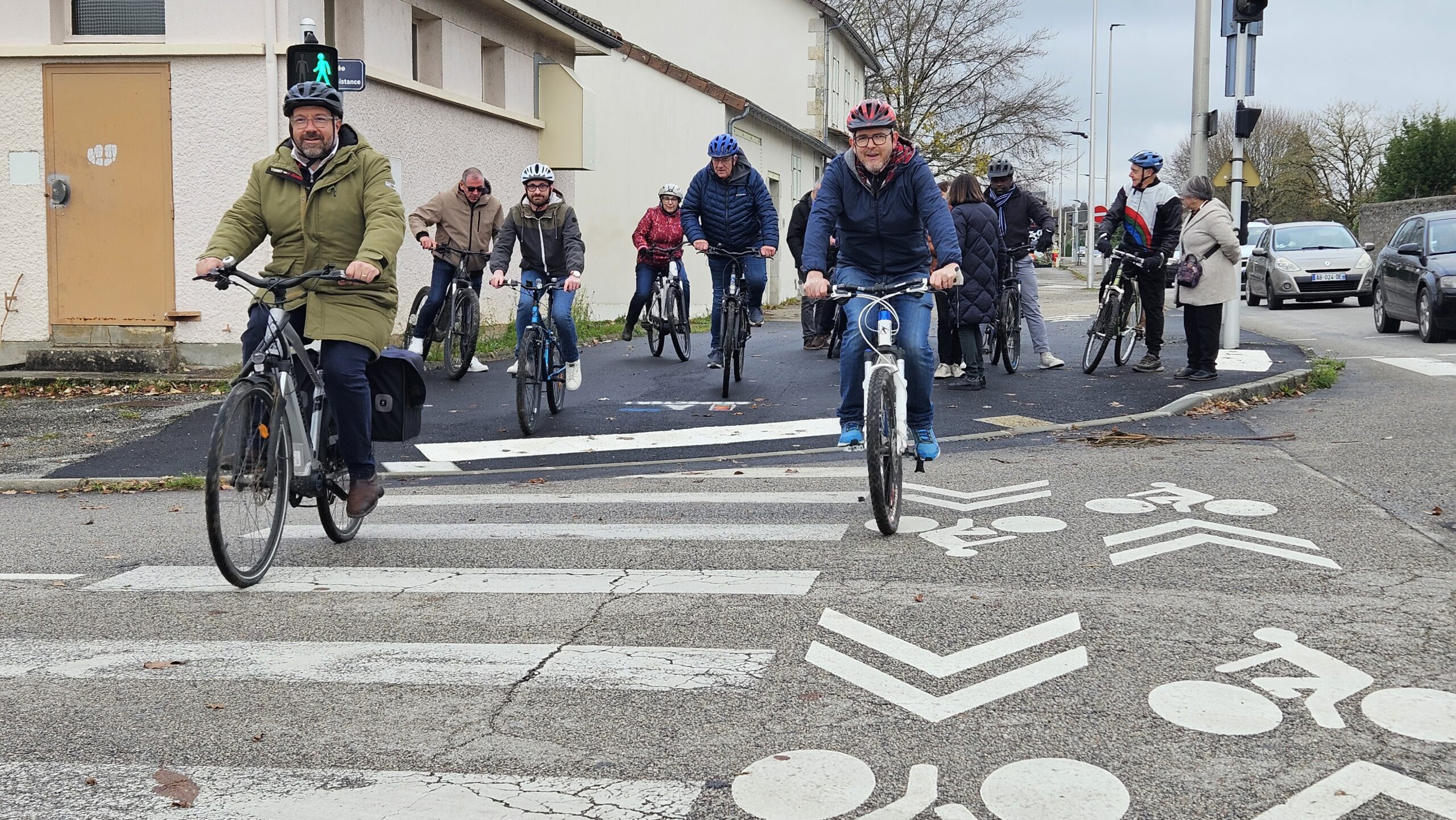 Samedi 29 novembre, les élus de la municipalité ont enfourché leurs vélos pour effectuer un point d’étape sur le projet de développement des pistes cyclables à Feytiat. Une manière concrète — et sportive — d’apprécier les aménagements déjà réalisés et ceux à venir. Aux côtés de Monsieur Nouhaud, représentant du Conseil Départemental, ils ont ainsi procédé à la réception technique de la première phase du projet, menée par Limoges Métropole.