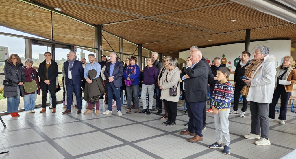 Autour du chef Pierre Blanchard et de son équipe, étaient également réunis les élus municipaux, les enseignants, des représentants des parents d’élèves, les élèves eux-mêmes, plusieurs fournisseurs du restaurant scolaire, ainsi que Madame Alice Wolf, inspectrice de la circonscription.