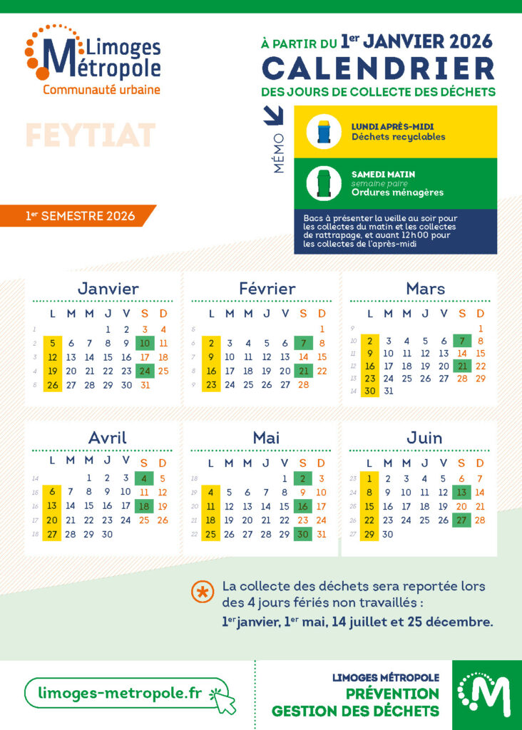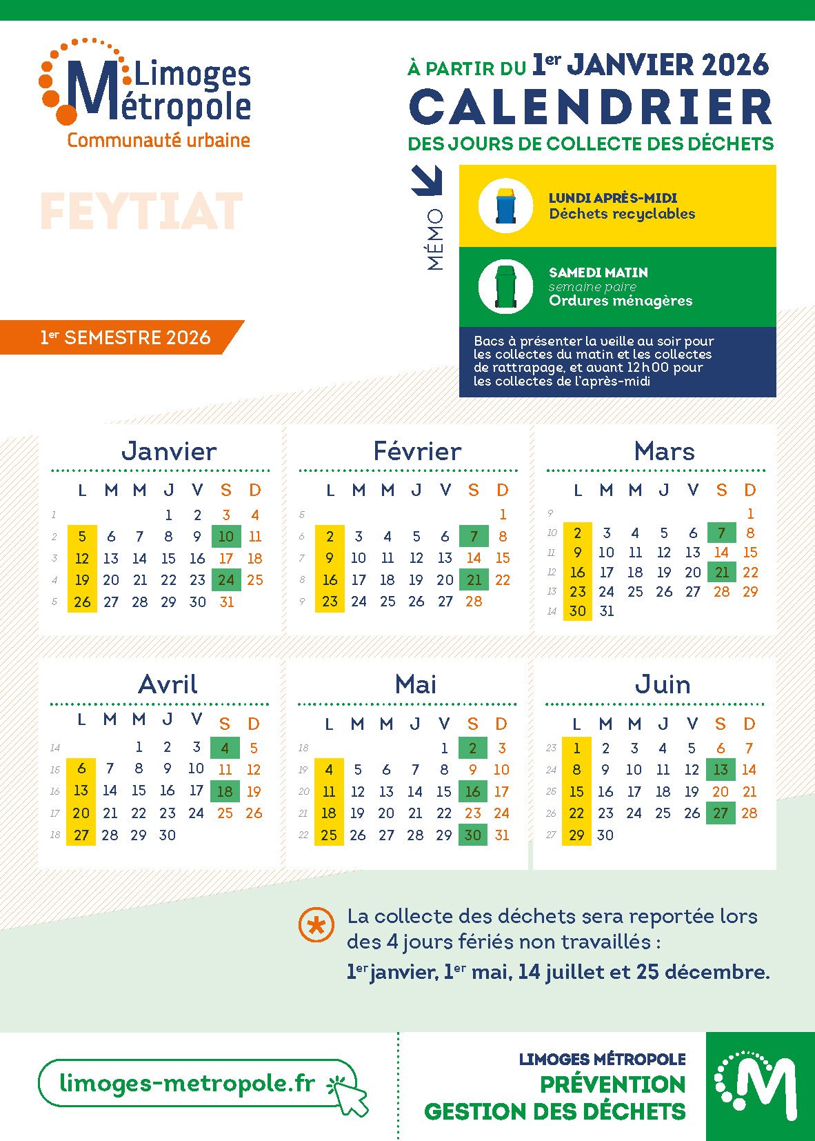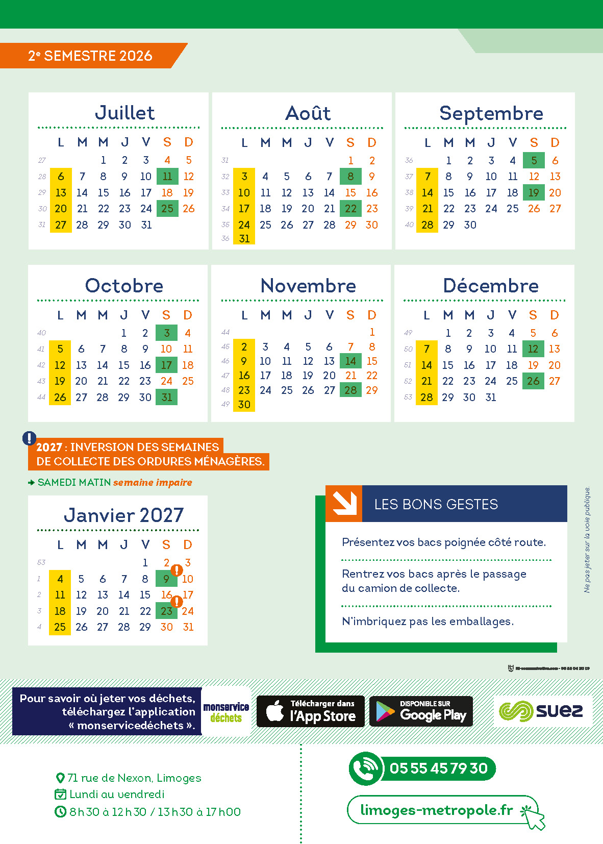 • Ordures ménagères (bacs verts) : samedi matin des semaines paires